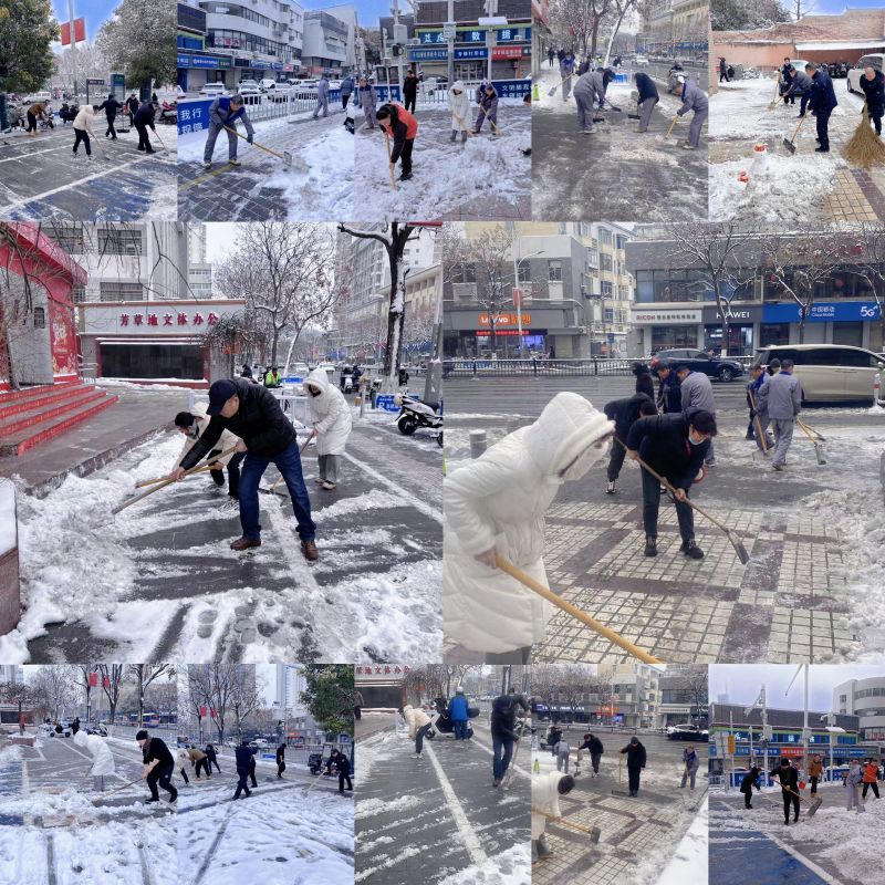 早上8點左右,許多黨員同志就提前到崗,自發(fā)組成了若干個掃雪大軍,各自負(fù)責(zé)不同區(qū)域的掃雪工作。大家頂著寒風(fēng),拿著鐵鍬、掃帚和雪鏟,爭著鏟、搶著掃,配合默契、齊心協(xié)力快速清理著地面厚厚的積雪。只見鐵鍬飛舞、落地有聲,掃帚擺動、殘雪盡除,緊接著手端融雪劑的同志立即撒布開來,一個個忙碌的身影在皚皚白雪中構(gòu)成了一道特殊的風(fēng)景線,引得路人聲聲贊嘆。面對這場極端天氣,海云公司黨員干部積極發(fā)揮黨員模范作用,以實際行動為維護城市環(huán)境貢獻(xiàn)一份力量。