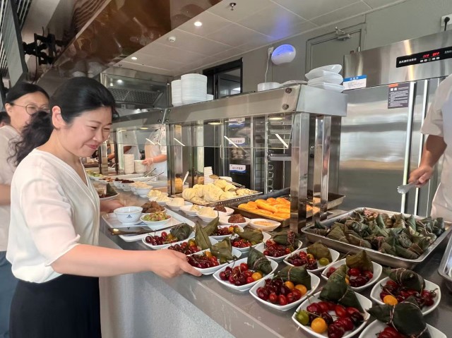 次日中午,集團(tuán)工會(huì)在員工餐廳精心準(zhǔn)備了色彩繽紛的水果拼盤、香甜軟糯的蜜棗粽子,為集團(tuán)員工送上節(jié)日祝福。大家圍坐在一起,一邊分享昨日包粽的趣事,一邊品嘗蜜粽鮮果,食堂里洋溢著歡聲笑語。