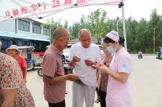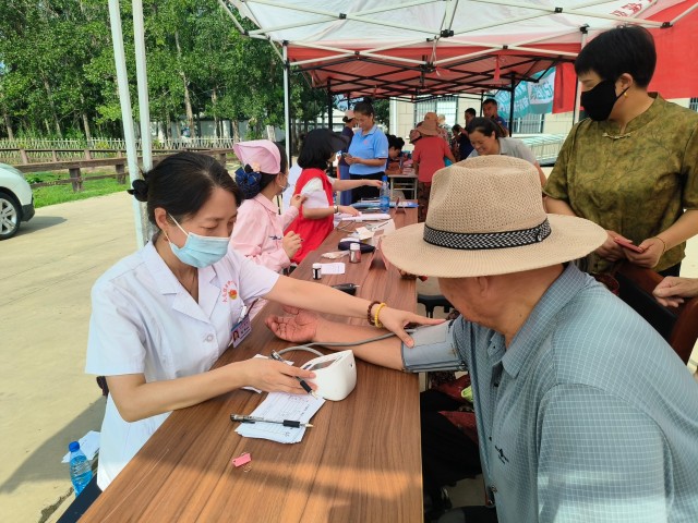 活動當天,很多村民早已在活動現場等候醫(yī)務人員的到來。醫(yī)務志愿者們迅速搭建起臨時服務臺,立即開始為村民們免費測量血壓、血糖,細致檢查視力,并結合檢測數據開展針對性健康指導,解答健康問題咨詢。針對現場老年村民普遍存在的血壓偏高問題,醫(yī)務人員重點講解了低鹽飲食、控制體重、規(guī)范用藥注意事項及情緒調節(jié)方法,條理清晰的講解讓村民們頻頻點頭。