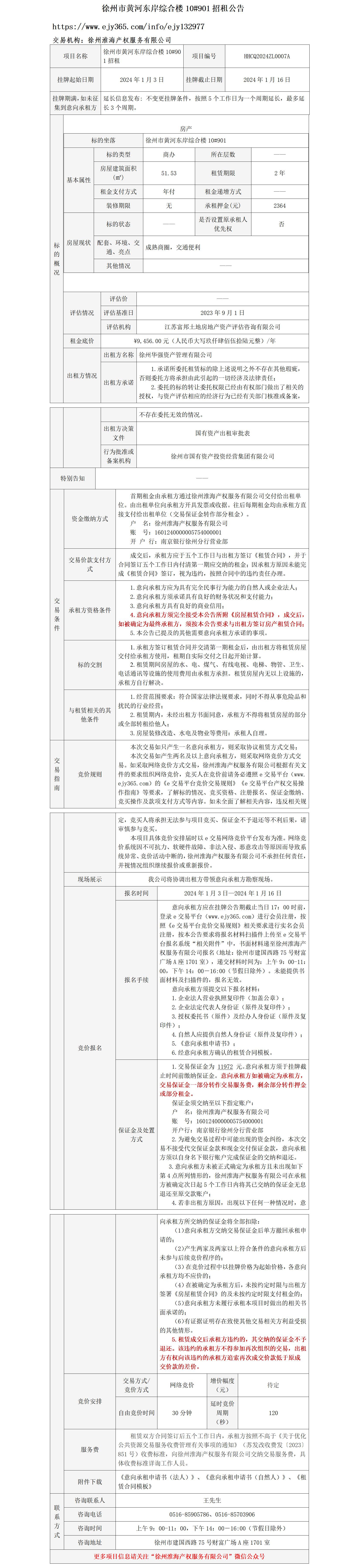 徐州市黃河東岸綜合樓10#901招租公告