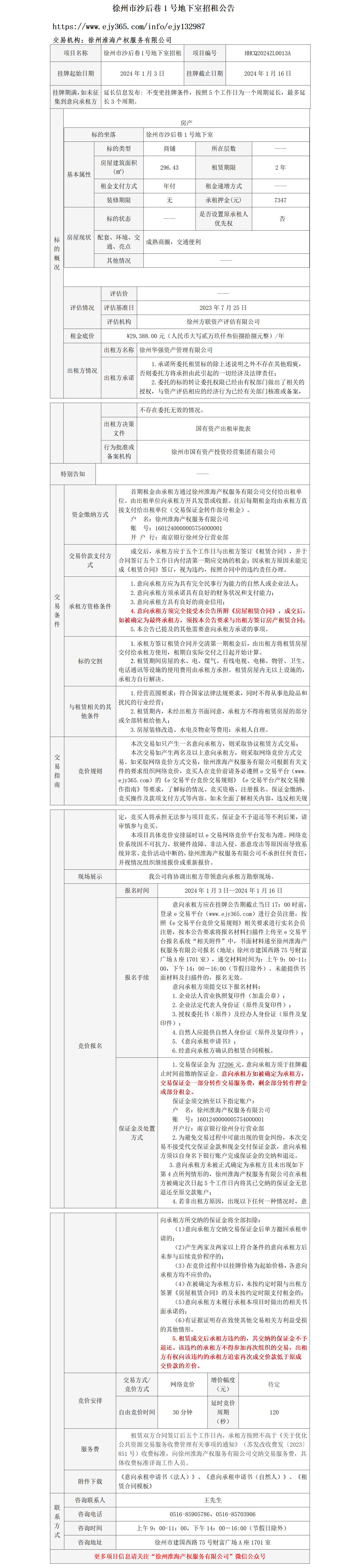 徐州市沙后巷1號(hào)地下室招租公告
