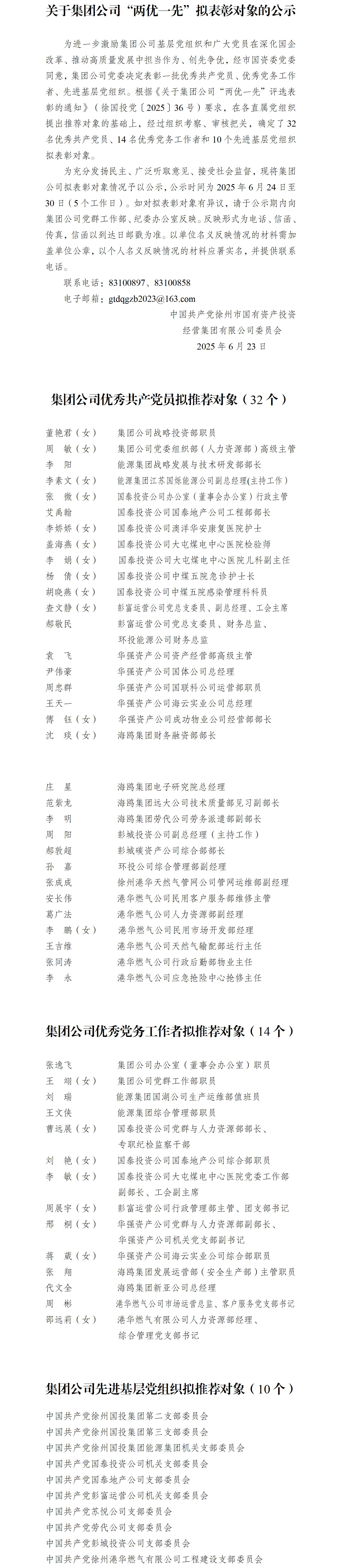 關(guān)于集團(tuán)公司“兩優(yōu)一先”擬表彰對(duì)象的公示