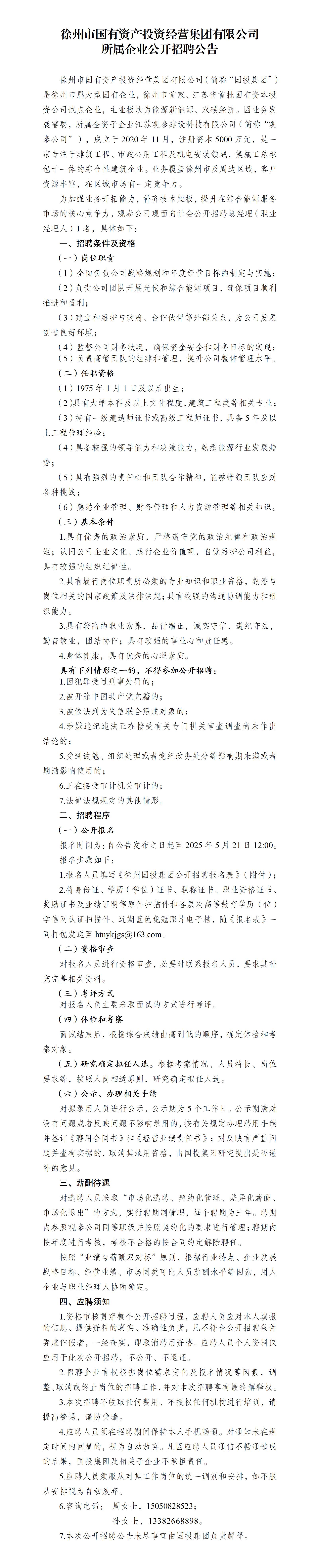 徐州市國有資產(chǎn)投資經(jīng)營集團(tuán)有限公司所屬企業(yè)公開招聘公告