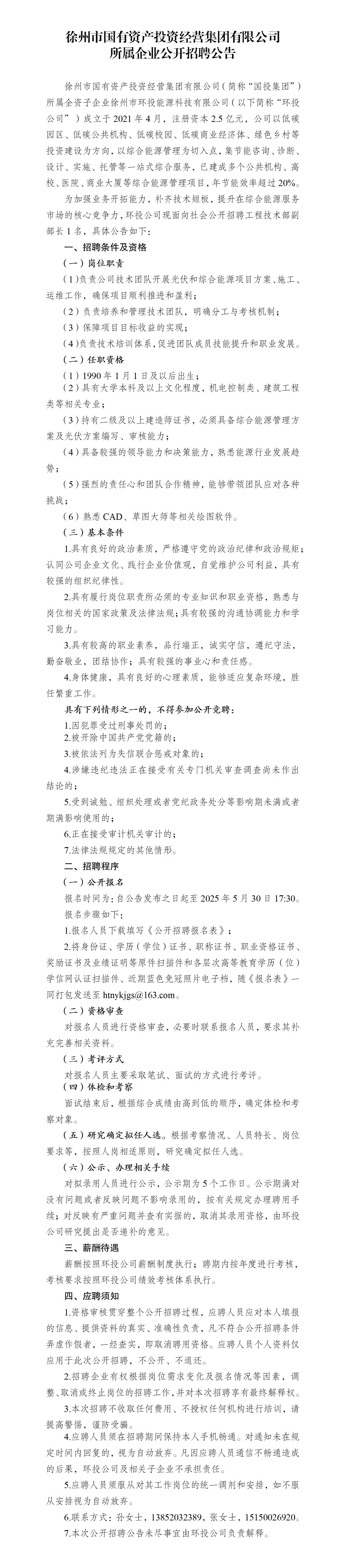 徐州市國有資產(chǎn)投資經(jīng)營集團(tuán)有限公司所屬企業(yè)公開招聘公告(環(huán)投公司)