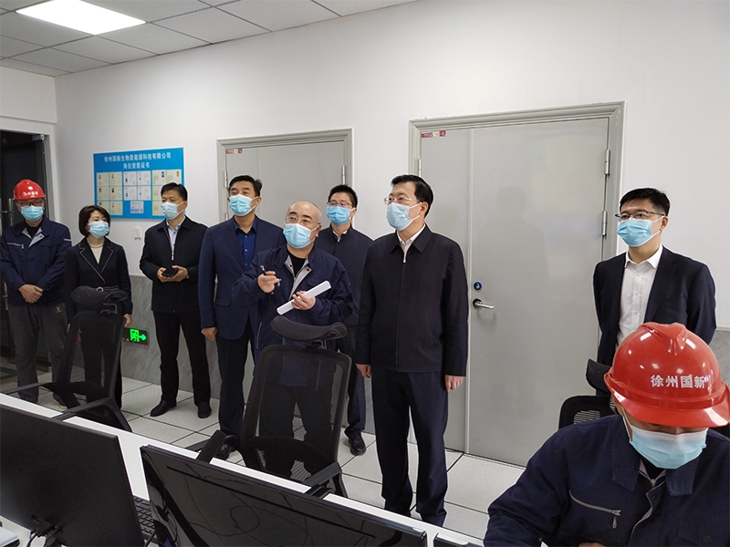10月10日上午,市國(guó)資委黨委書記、主任、沛縣縣委書記丁廣州,沛縣副縣長(zhǎng)、安國(guó)鎮(zhèn)黨委書記朱成一行到徐州國(guó)新生物質(zhì)能源科技有限公司(以下簡(jiǎn)稱“國(guó)新公司”)投資建設(shè)的沛縣有機(jī)廢棄物處理中心調(diào)研。集團(tuán)公司黨委書記、董事長(zhǎng)王鵬,黨委委員、副總經(jīng)理王濤一同參加調(diào)研。