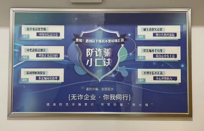 為切實(shí)保障廣大職工財(cái)產(chǎn)安全,按照省委政法委等七部門《開展“無詐社區(qū)(村)”“無詐機(jī)關(guān)(單位)”無詐校園“無詐企業(yè)”創(chuàng)建活動(dòng)的行動(dòng)方案》的通知,國(guó)投集團(tuán)積極響應(yīng),開展反詐宣傳活動(dòng)。通過在集團(tuán)公司辦公區(qū)域、公告欄處張貼防詐騙宣傳海報(bào),號(hào)召全體職工學(xué)習(xí)反詐知識(shí),增強(qiáng)防詐技能,提高識(shí)騙防騙能力,并時(shí)刻提醒廣大職工,強(qiáng)化防騙意識(shí),謹(jǐn)防上當(dāng)受騙。