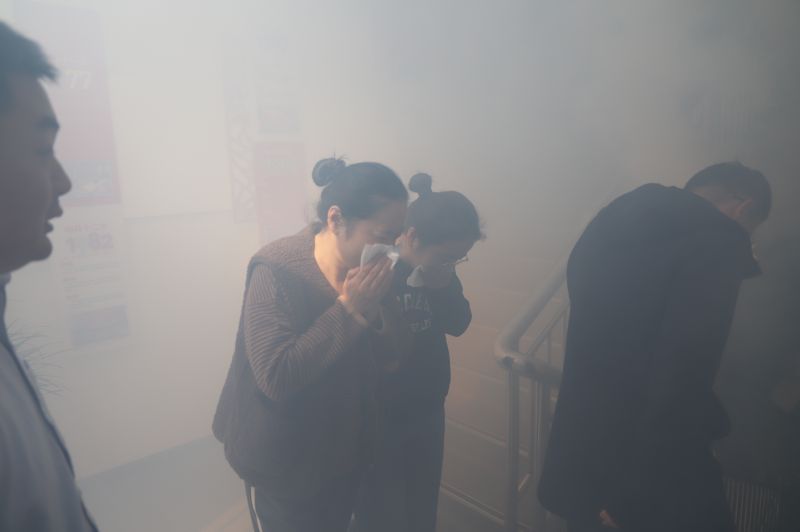 培訓結束后,全體參訓職工參加了應急疏散演練,張?zhí)斐刂魅芜M行全程指導,演練采用消防演習煙霧等先進手段,更加貼近現(xiàn)實火情,取得了顯著成效。