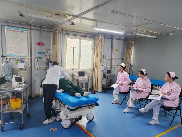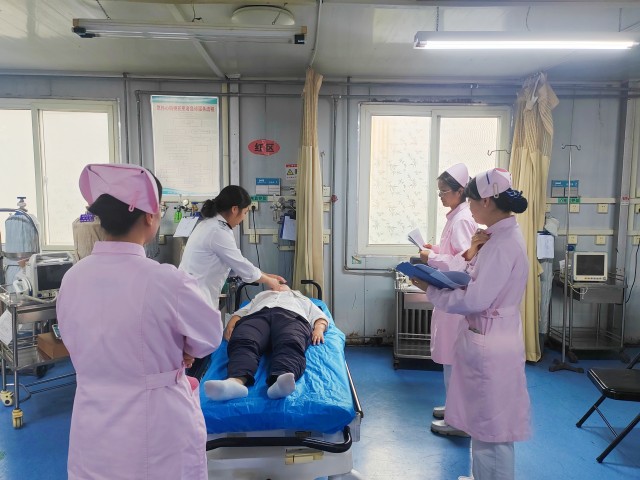 不同于單項(xiàng)技能比武,本次OSCE考核最大的特點(diǎn)是高度模擬臨床真實(shí)情境,強(qiáng)調(diào)工作的連貫性和應(yīng)急判斷能力??己朔譃槿荆h(huán)環(huán)相扣。第一站,護(hù)士化身為洞察入微的“偵察兵”,在有限時(shí)間內(nèi),面對(duì)由專業(yè)人員扮演的“標(biāo)準(zhǔn)化病人”,進(jìn)行詳細(xì)的病史采集和精準(zhǔn)的身體評(píng)估,此站考驗(yàn)了護(hù)士的溝通技巧和觀察能力;第二站,護(hù)士化身為精準(zhǔn)高效的“戰(zhàn)術(shù)家”,基于第一站的評(píng)估結(jié)果迅速提出核心護(hù)理問題,并立即采取相應(yīng)的護(hù)理措施;第三站,護(hù)士化身為沉著果敢的“突擊隊(duì)”,面對(duì)患者病情驟然惡化,第一時(shí)間識(shí)別危急值,果斷采取心肺復(fù)蘇、急救用藥等緊急救治措施。這一站是考核的重中之重,直接檢驗(yàn)護(hù)士在壓力下的心理素質(zhì)、快速反應(yīng)能力和搶救技能。